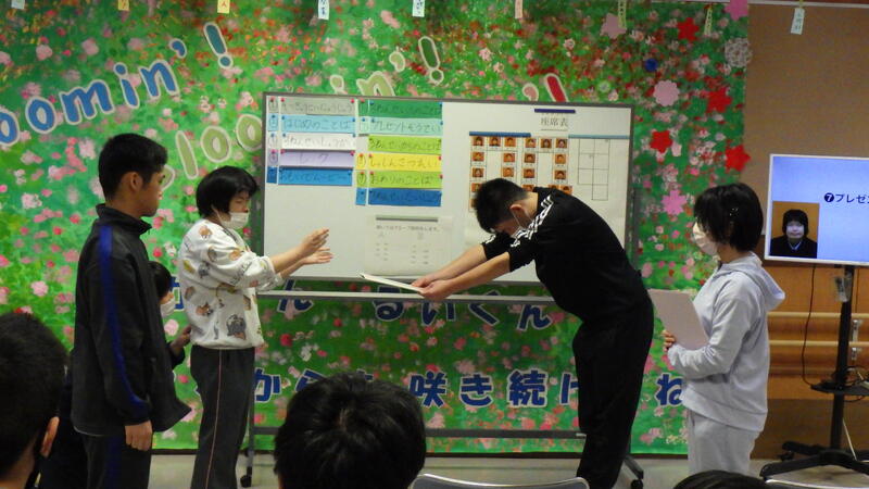 高等部では、「卒業と進級」の学習として、3月12日(木)にお別れ会を行いました。この日のために、1、2年生は、司会グループと会場グループに分かれて意見を出し合い、準備を進めてきました。